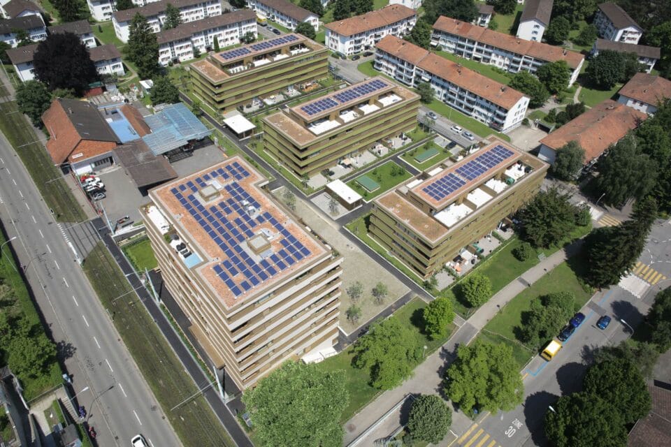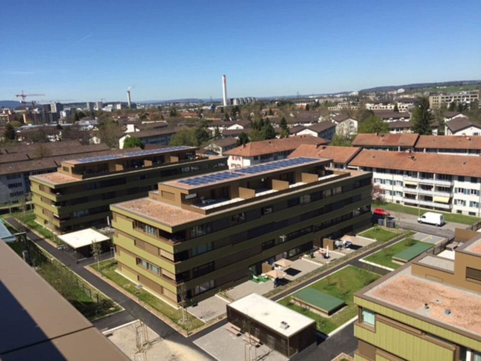Willkommen in unserer modernen Siedlung in Schwamendingen, Zürich, die im Jahr 2014 erbaut wurde und den zeitgemäßen Minergie P ECO Baudstandard erfüllt. Unsere Neubauwohnungen zeichnen sich durch moderne Großzügigkeit aus, inklusive PV-Anlagen auf dem Dach für nachhaltigen Energieverbrauch. Parkmöglichkeiten vor Ort erleichtern den Alltag, während ein Naherholungsgebiet in der Nähe für entspannende Momente sorgt.